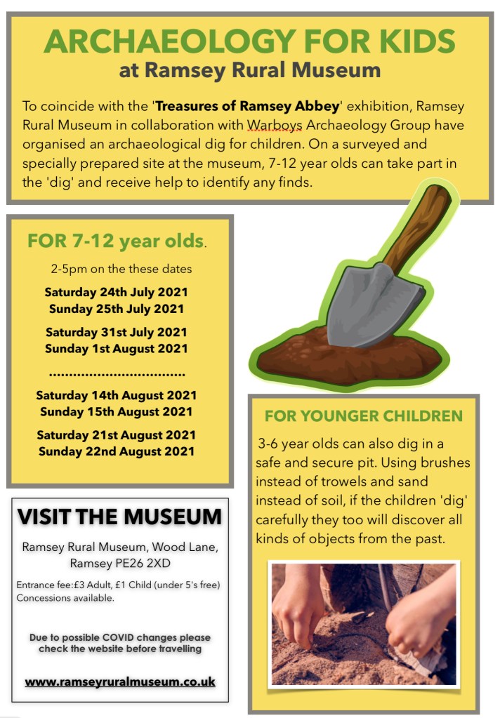 Archaeology for Kids at Ramsey Rural Summer event, July and August see poster for details