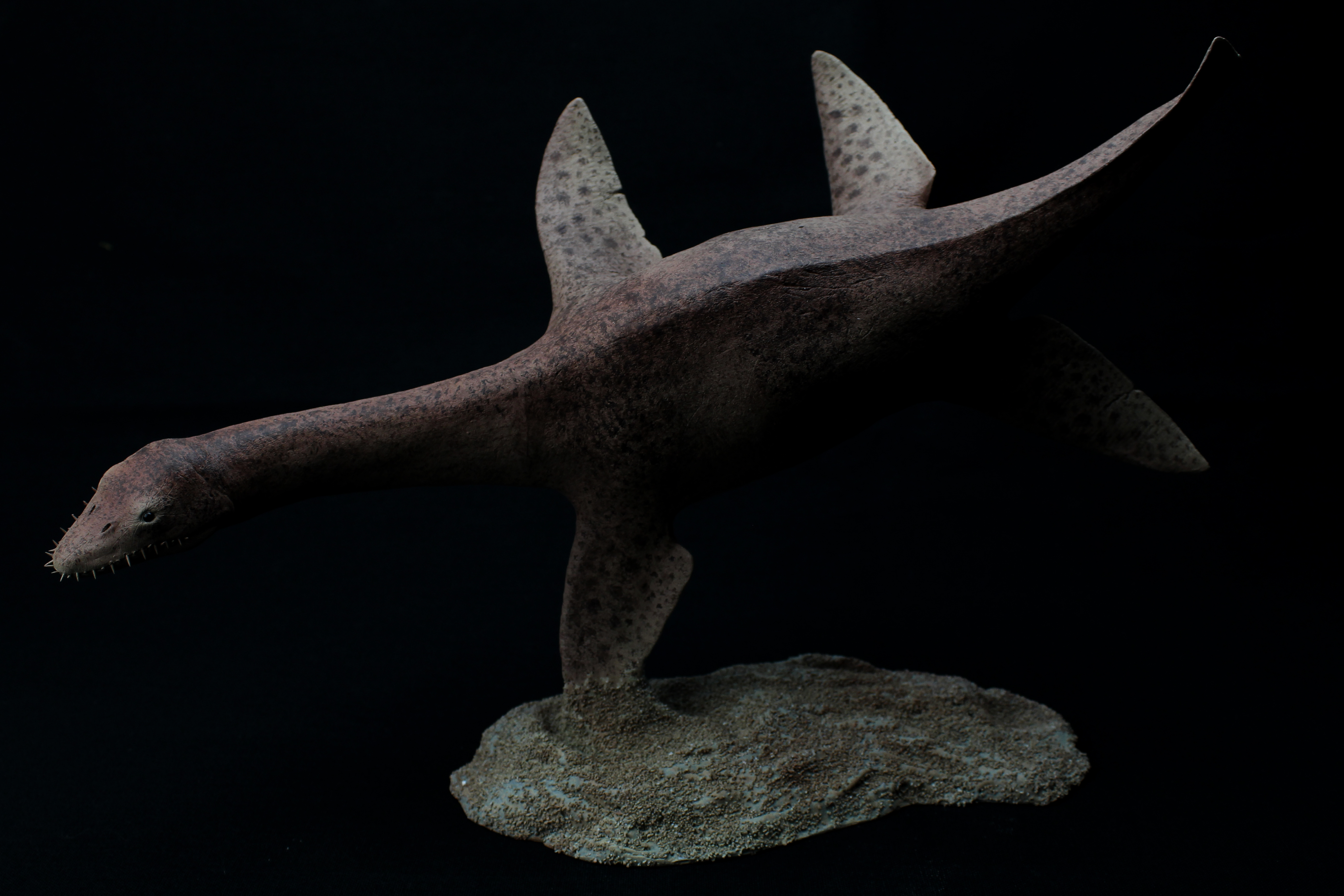 A museum full of rocks and fossils may not be the first place you think of to promote artist development, but our collections here at the Sedgwick are doing just that. In the autumn of 2018, Arts University Bournemouth student and model-maker Emily Manning approached the Sedgwick Museum. The museum was a childhood favourite of hers and she wanted to know if we would like to collaborate with her on a module of her University course in modelmaking. The result of this collaborative art project is a 3D reconstruction of the Jurassic plesiosaur Cryptoclidus eurymerus. The final model is a detailed 30cm long resin cast created from a clay sculpture. We incorporated the latest research and theories to help us create a modern interpretation of this extinct marine reptile. The model is on display in the museum’s ‘Jurassic Seas’ cases, alongside the 160 million year old fossils it is based on. Our displays feature outdated reconstructions and the new model provides some new visual interpretation for our visitors.